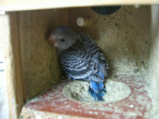 Foto 5, 6 e 7 - Os meus três Periquitos bebes do meu casal fêmea azul face amarela/macho azul