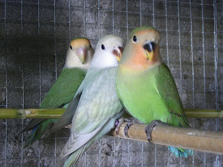 Foto 1, 2 e 3 - Os meus três Roseicollis do meu casal fêmea amarela/macho azul