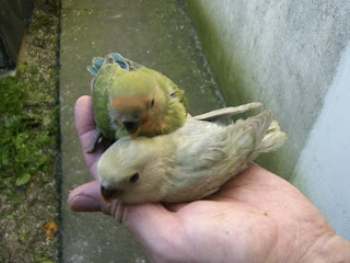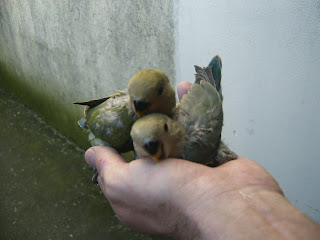 Foto 4, 5 e 6 - Os meus dois Roseicollis bebes do meu casal fêmea verde aqua/macho verde face vermelha