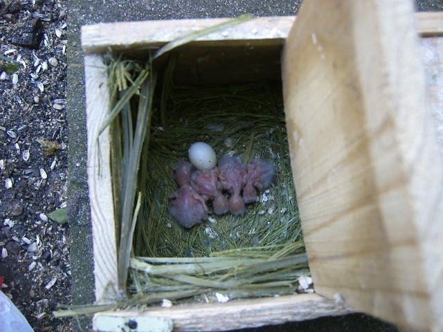 Foto 10, 11 e 12 - Os meus quatro Roseicollis bebes do meu casal fêmea azul marinho/macho malhado