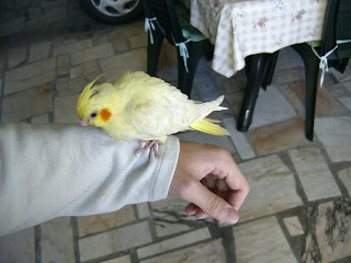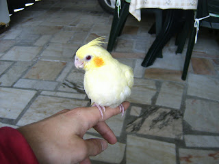Foto 1 e 2 - O meu Roseicolli bebe do meu casal lutino face laranja