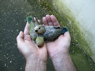 Foto 9, 10 e 11 - Os meus três Roseicollis bebes do meu casal fêmea verde/macho lutino