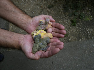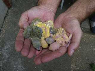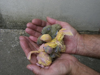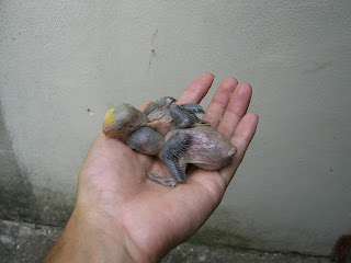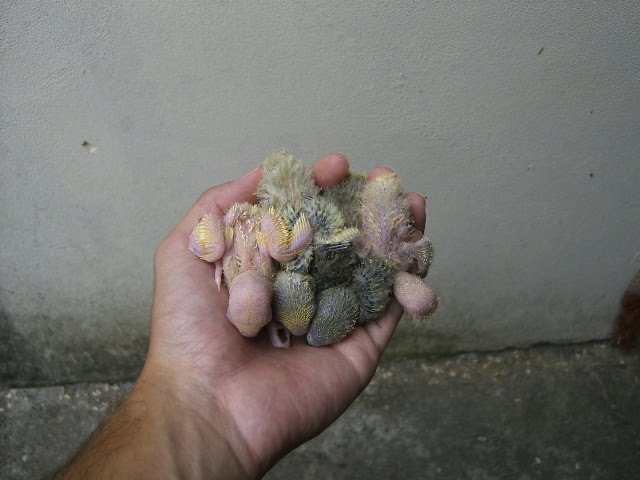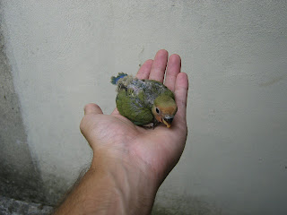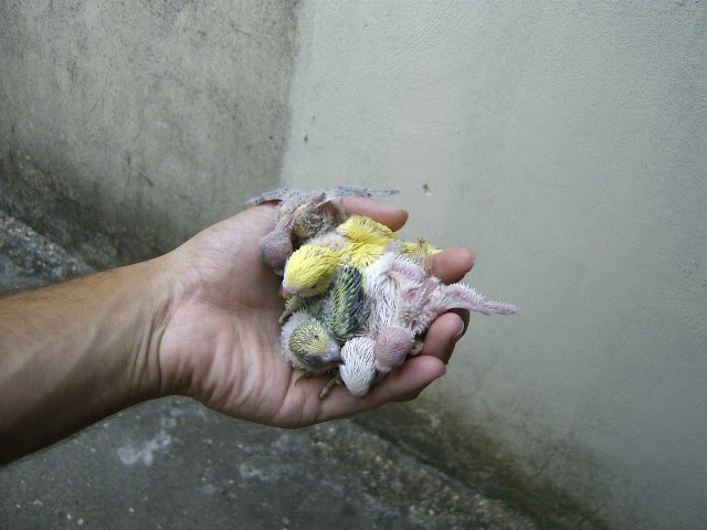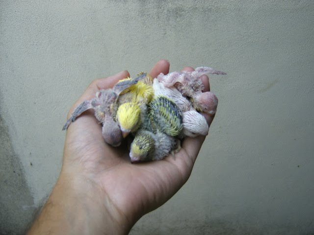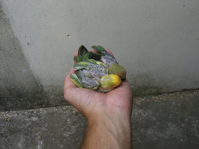 Foto 7, 8 e 9 - Os meus três Roseicollis bebes do meu casal fêmea verde oliva/macho lutino