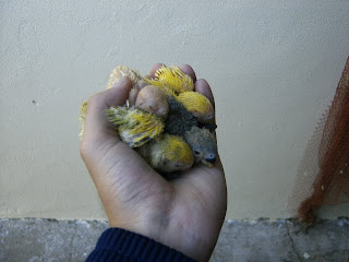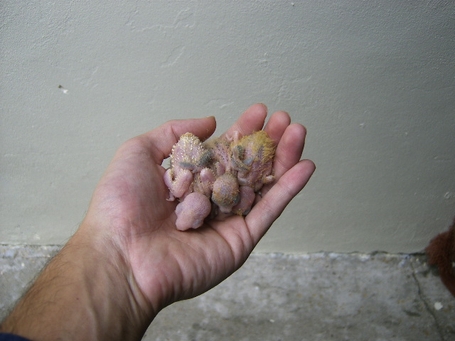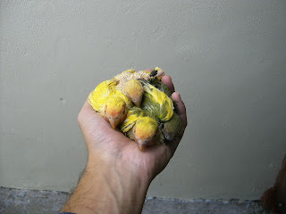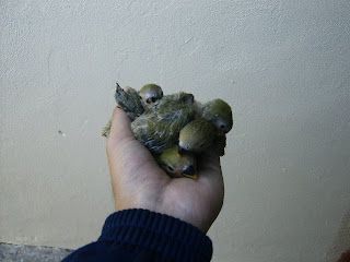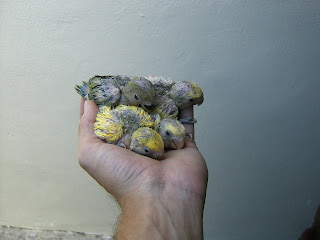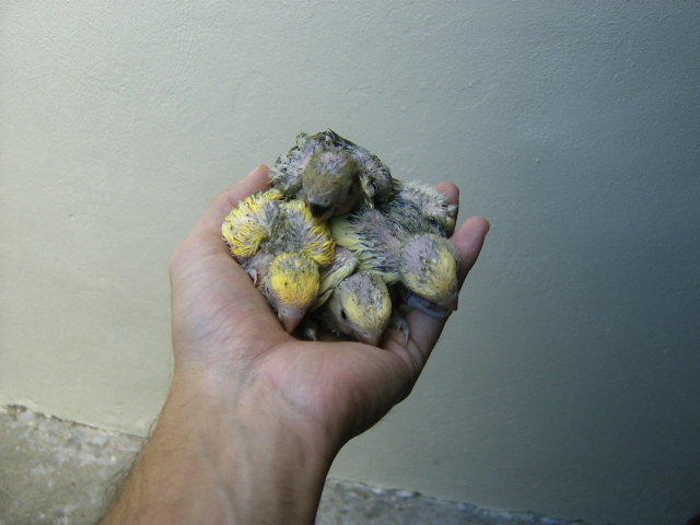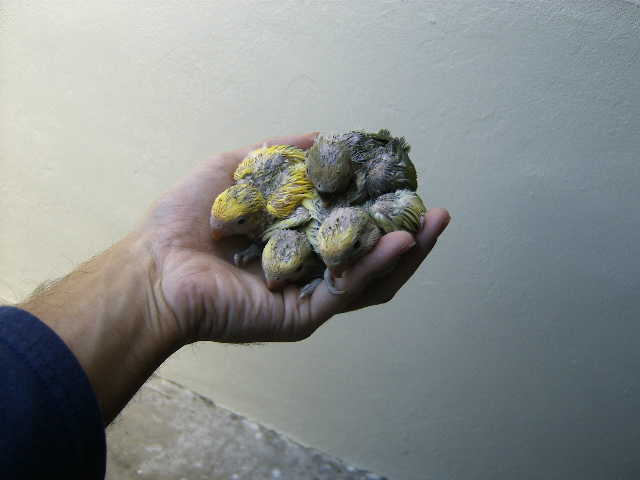 Foto 6, 7 e 8 - Os meus quatro Roseicollis bebes do meu casal fêmea verde/macho lutino