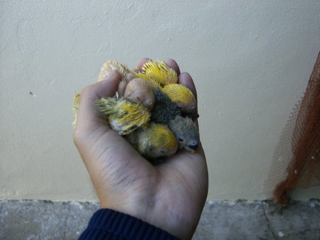 Foto 9, 10 e 11 - Os meus três Roseicollis bebes do meu casal fêmea azul-marinho/macho verde asa rendada