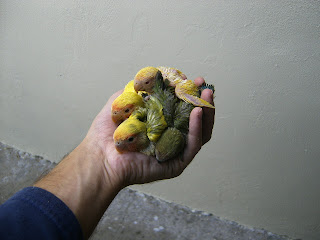 Foto 18, 19 e 20 - Os meus três Roseicollis bebes do meu casal verde face laranja