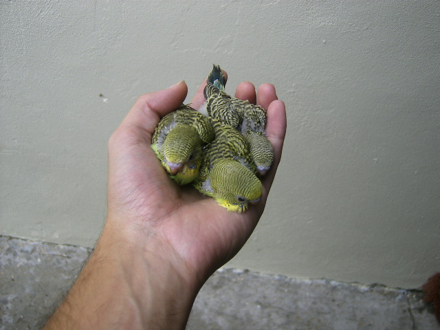 Foto 3, 4 e 5 - Os meus quatro Roseicollis bebes do meu casal fêmea verde/macho arlequim