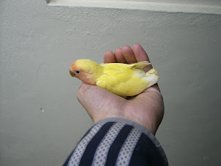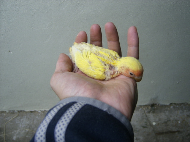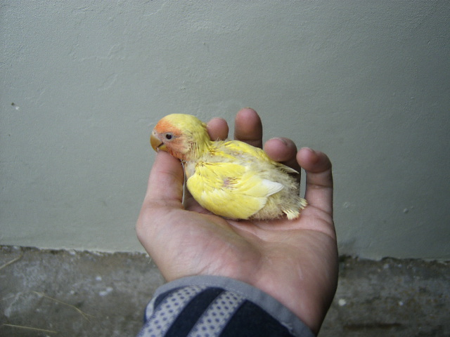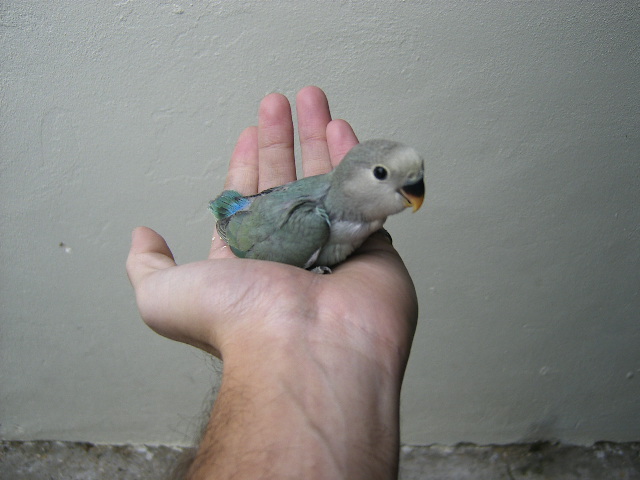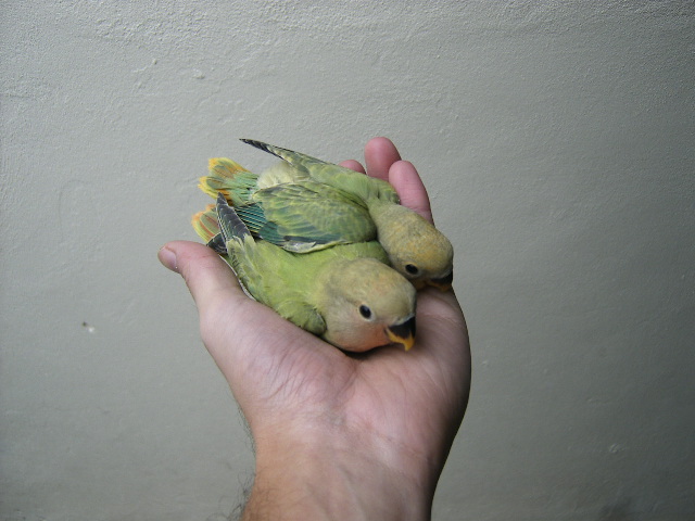 Foto 1 - A minha cria de Roseicolli do meu casal fêmea verde face laranja/macho lutino face laranja