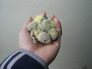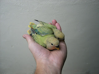 Foto 4, 5 e 6 - Os meus três Roseicollis bebes do meu casal fêmea verde oliva/macho lutino