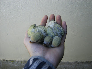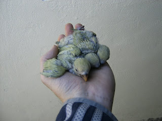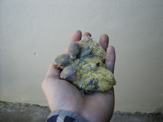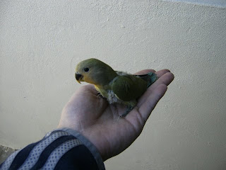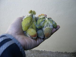 Foto 22, 23 e 24 - Os meus quatro Roseicollis bebes do meu casal fêmea verde oliva/macho lutino