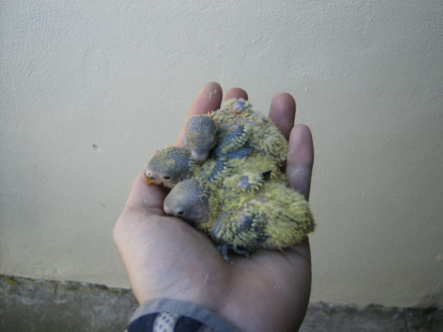 Foto 1, 2 e 3 - Os meus três Roseicollis bebes do meu casal fêmea verde/macho arlequim