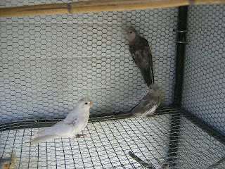 Foto 28, 29 e 30 - Os meus dois Roseicollis bebes do meu casal fêmea lutina face vermelha/macho lutino face laranja