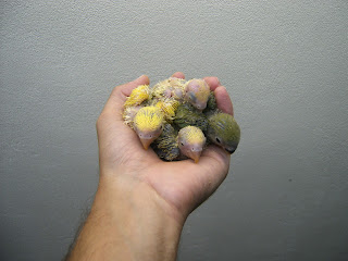 Foto 7, 8 e 9 - Os meus três Roseicollis opalinos bebes do meu casal fêmea golden cherry/macho verde cabeça laranja