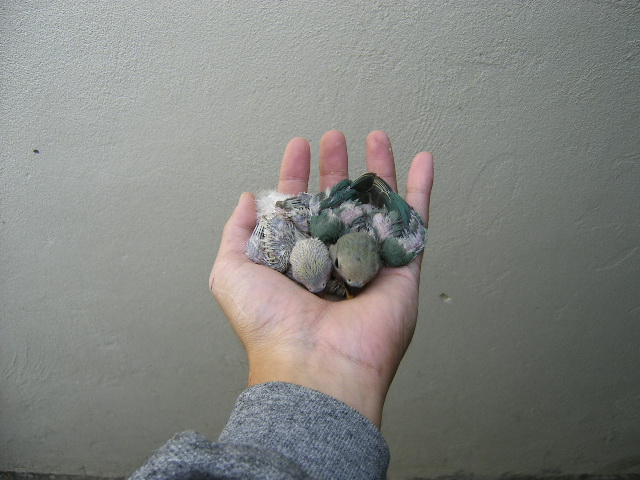 Foto 28, 29 e 30 - Os meus quatro Roseicollis bebes do meu casal opalino fêmea golden cherry/macho verde cabeça laranja
