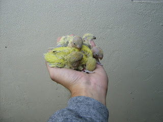 Foto 34, 35 e 36 - Os meus três Roseicollis bebes do meu casal fêmea verde oliva/macho lutino